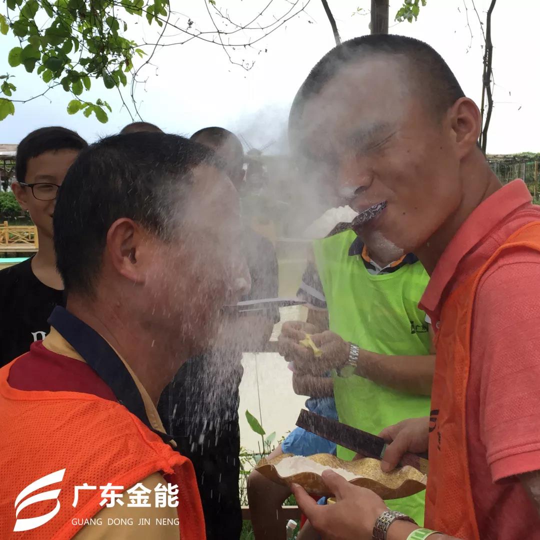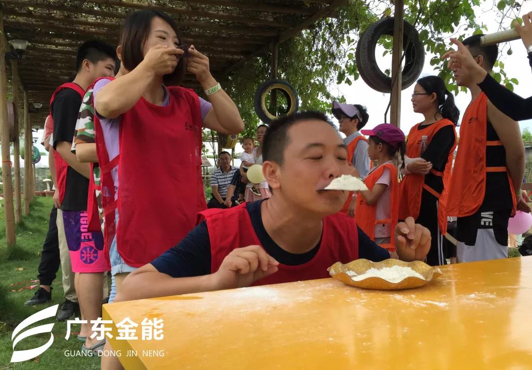 游戏规则:每一队利用嘴巴和纸牌来搬运面粉,接到最多的队伍赢。