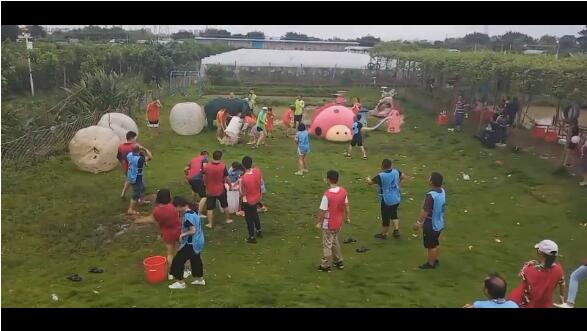 橙队和绿队率先把水球战斗完了,不怕,还有桶里的水,干脆来个泼水节,哈哈哈~~